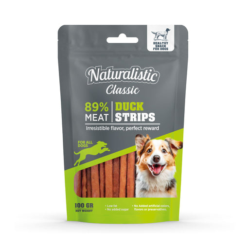 Naturalistic Duck Strips es un snack para perros, hecho en base a proteína de pechuga de pato, sin harinas cárnicas, sin materiales deshidratados, ...